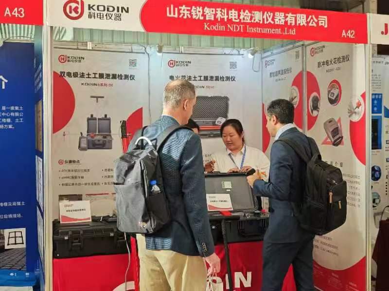 本次活動(dòng)由科電儀器市場(chǎng)部總監(jiān)鄭海燕帶隊(duì),積極參與,展示了多款先進(jìn)設(shè)備,包括雙電極法土工膜檢漏儀和電火花法土工膜檢漏儀。